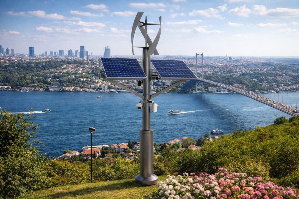Nu Teknoloji, şehirlerde altyapı kurma ihtiyacını ortadan kaldıran “Akıllı Enerji Direği” çözümünü sundu. Yalnızca bir aydınlatma direği olmanın ötesine geçen bu sistem; güneş paneli, mikro rüzgar türbini ve enerji depolama altyapısıyla çalışıyor. Kablolama gerektirmeden, şebekeye bağlı olmadan ve kazı yapılmadan kurulabilen direk, enerjisini güneş ve rüzgardan üretiyor.